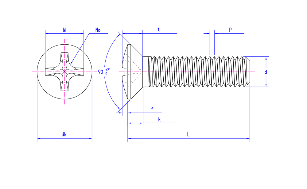 | মাথা বৈশিষ্ট্য | ক্রস countersunk মাথা |