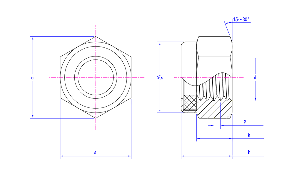 | অভ্যন্তরীণ বৈশিষ্ট্য | ঘর্ষণ এবং লকিং ফোর্স বাড়ানোর জন্য নাইলন রিংগুলির মতো অ-ধাতু উপাদান সন্নিবেশ সহ অভ্যন্তরীণ |