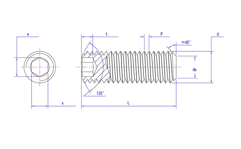 DIN 913 স্টেইনলেস স্টিল হেক্সাগন সকেট সেট স্ক্রু ফ্ল্যাট পয়েন্ট সহ