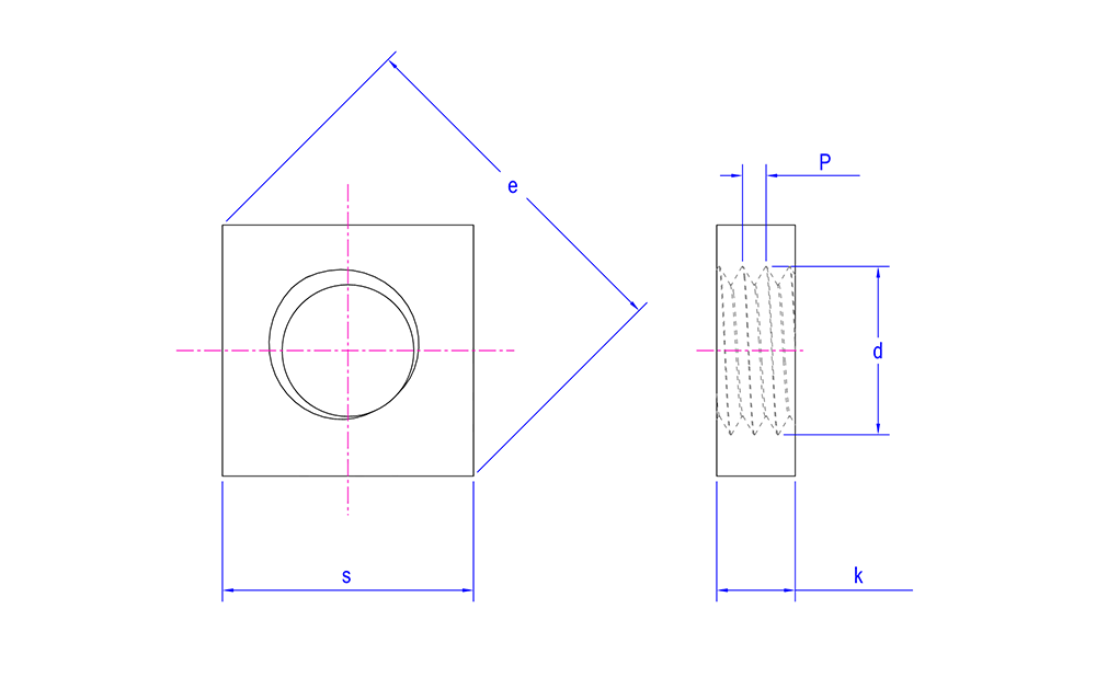 DIN 562 স্টেইনলেস স্টীল স্কয়ার পাতলা বাদাম